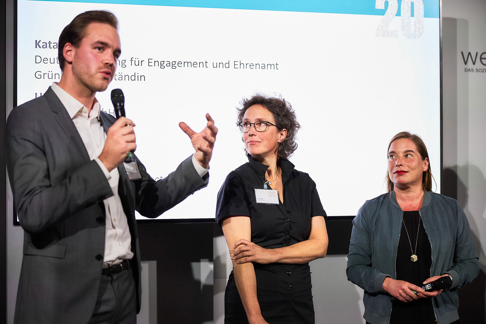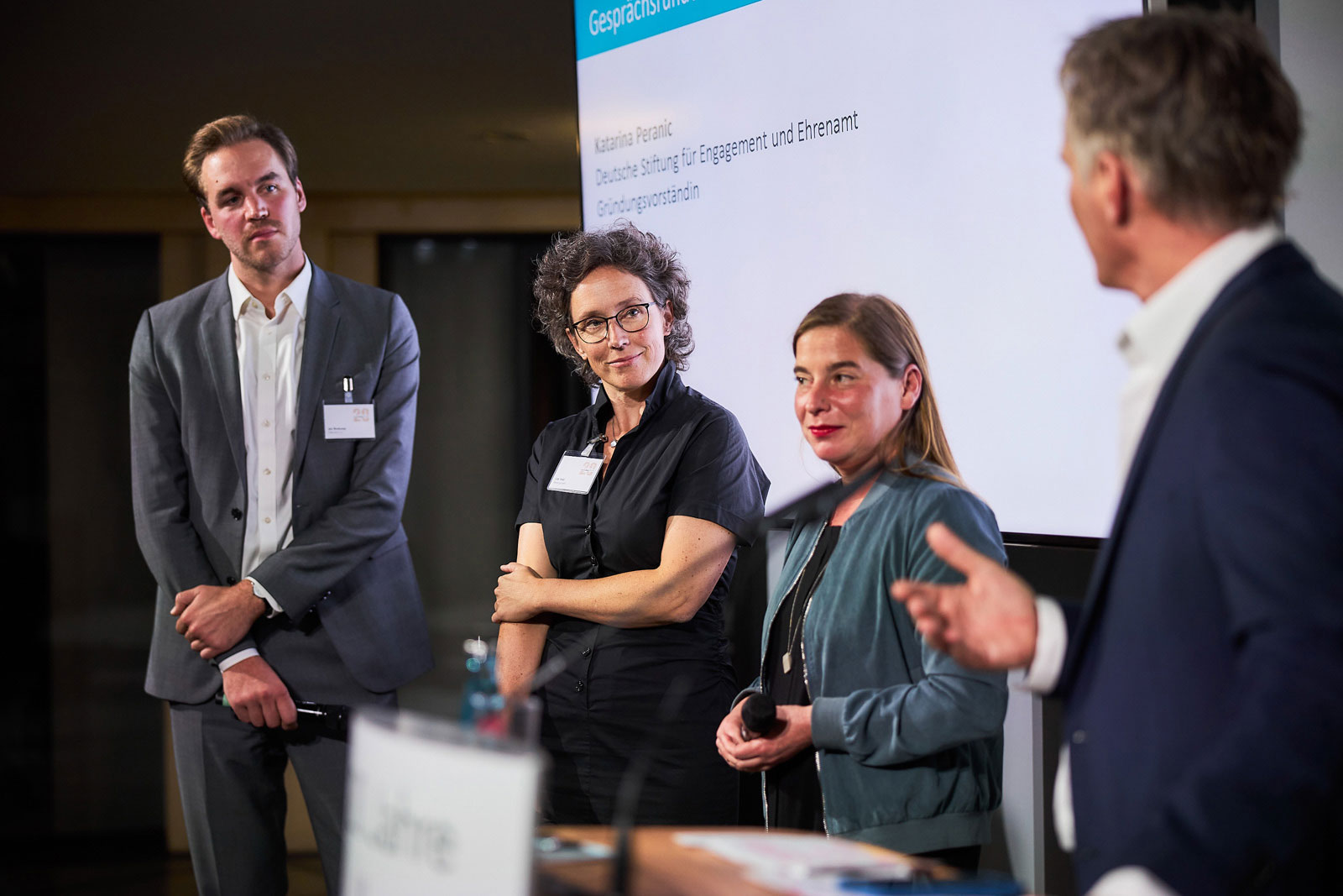 In einer zweiten Interviewrunde haben sich Katarina Peranic von der Deutschen Stiftung für Engagement und Ehrenamt, Ute Volz von ELEVEN und Jan Boskamp von Joblinge zum Thema Sozialstaat und Sozialunternehmen ausgetauscht und aufgezeigt wie wichtig die ergänzenden Hilfsangebote für unser System sind und welchen politischen Handlungsbedarf es aktuell gibt.
